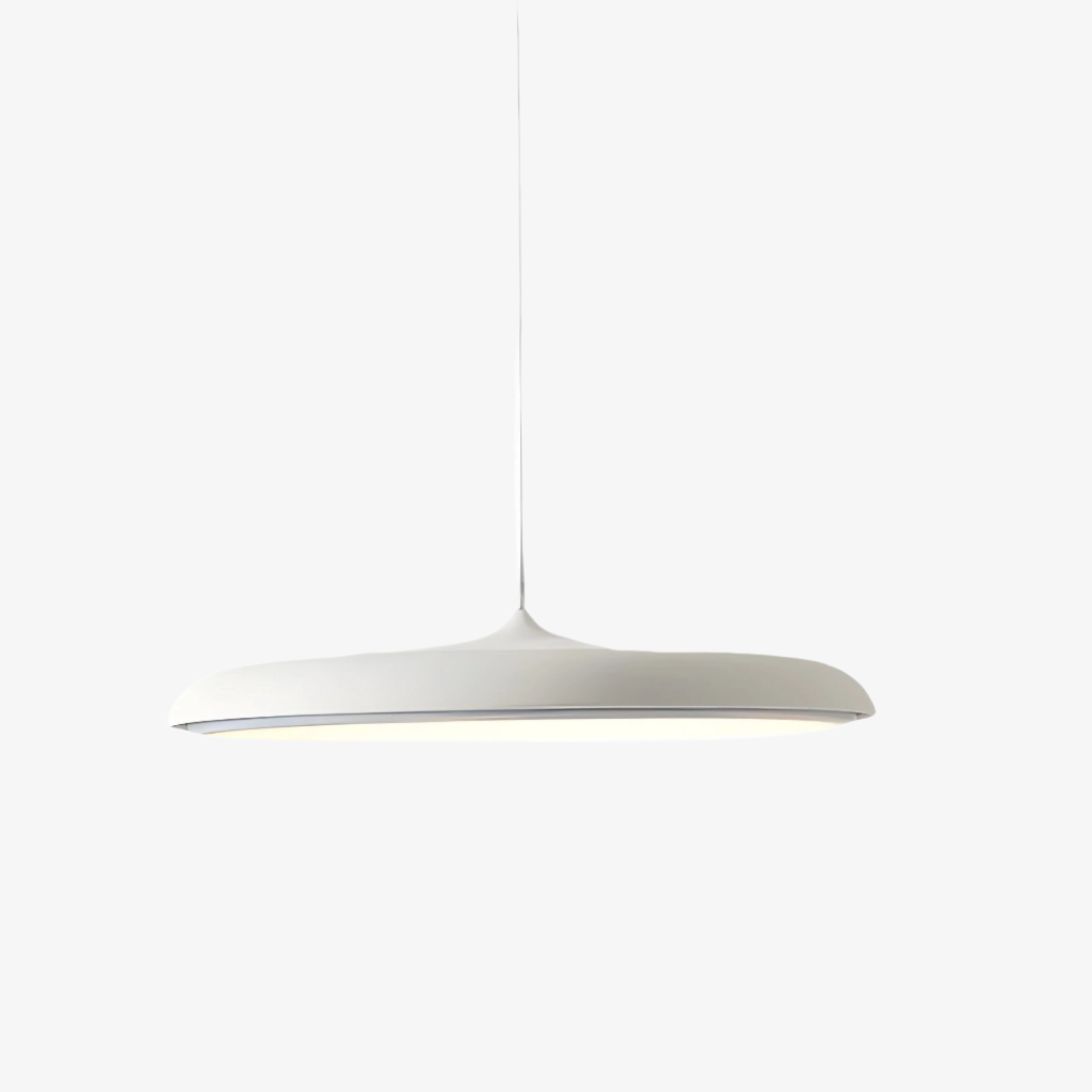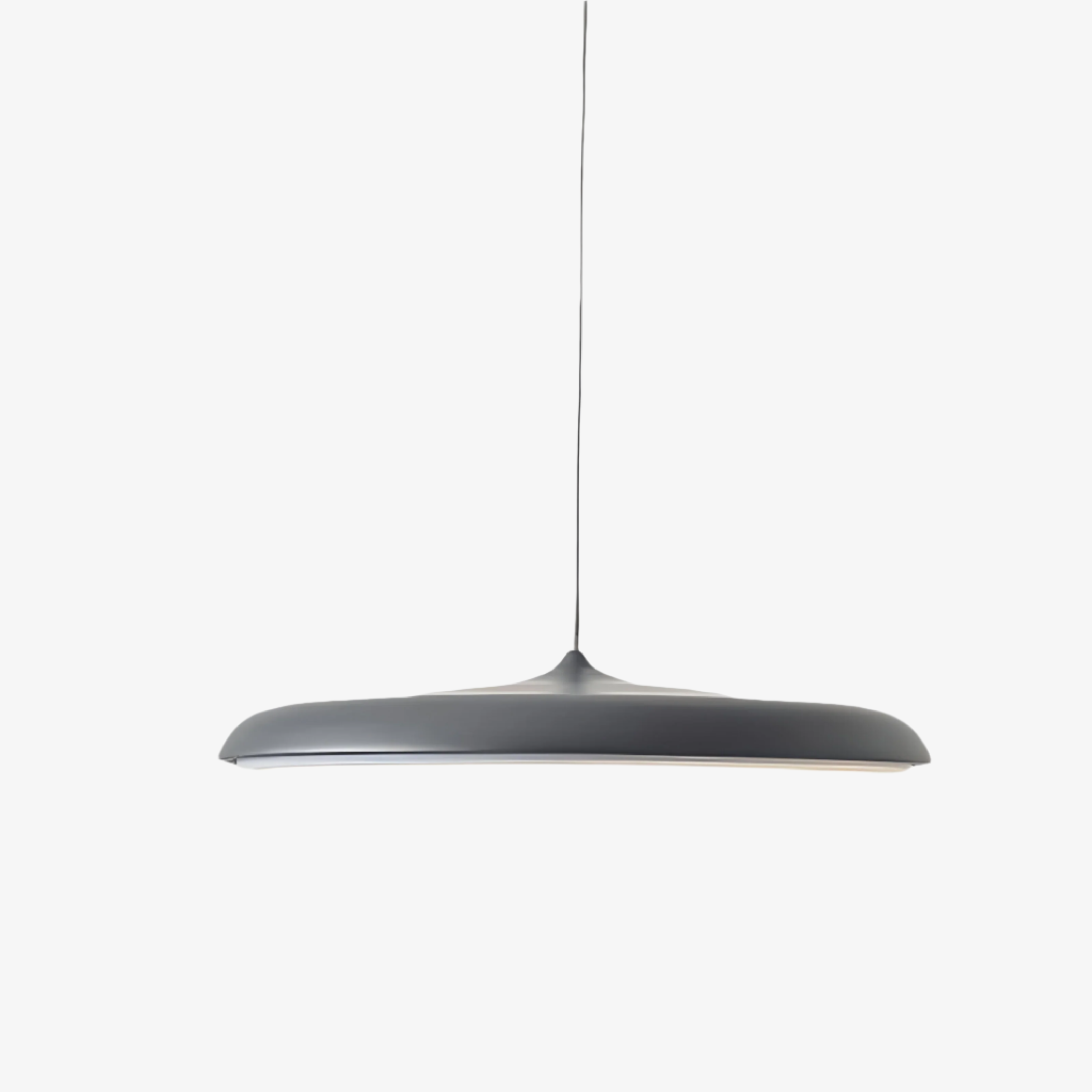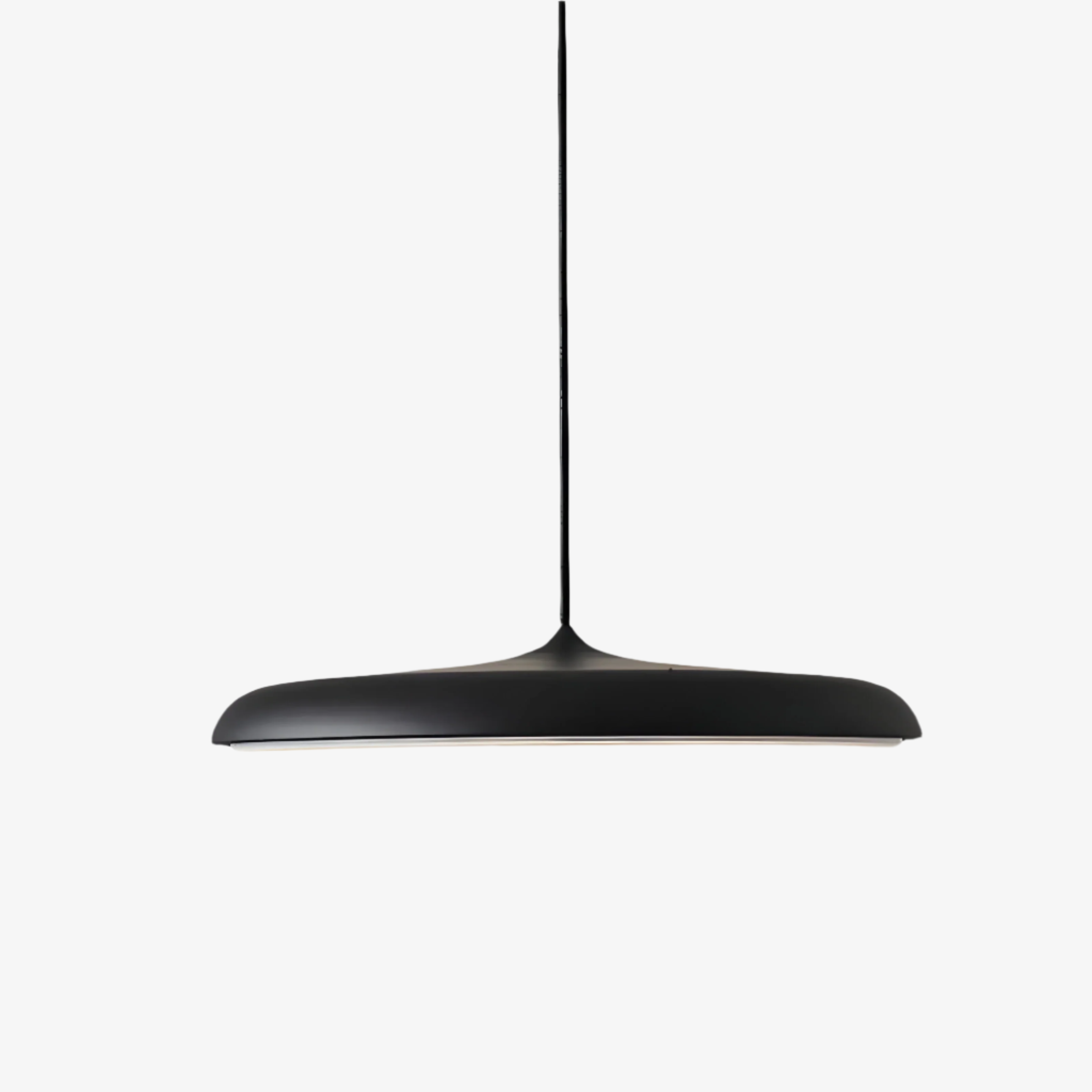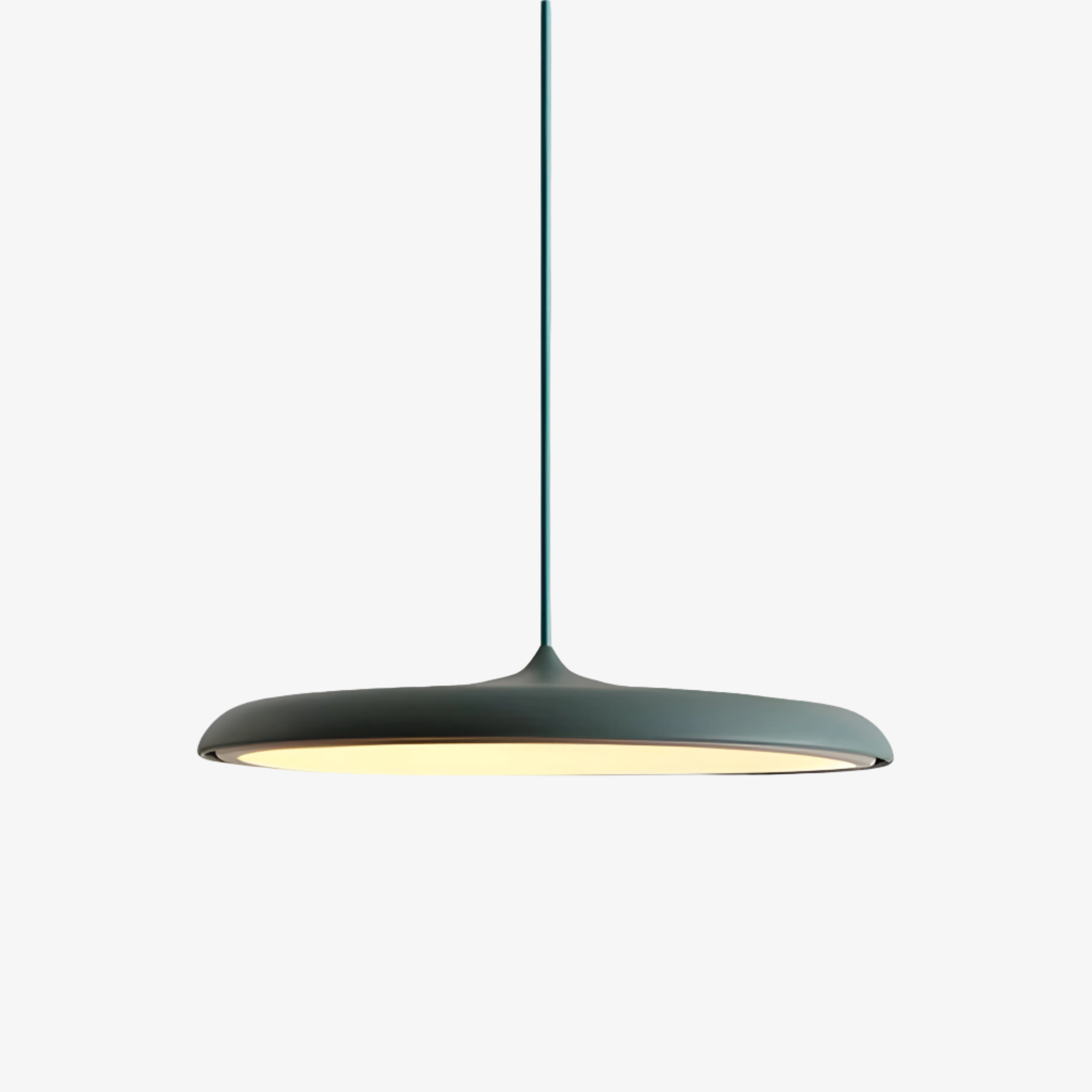 The Arvid Pendant is a modern and minimalist lighting fixture with a sleek, wide, and shallow dome design. Suspended by a thin, subtle cord, the light maintains a clean and sophisticated aesthetic. Its wide, disc-like shade provides even illumination, making it an excellent choice for dining areas, kitchen islands, and stylish commercial spaces. The combination of matte and metallic finishes adds a refined contrast, enhancing its modern appeal.