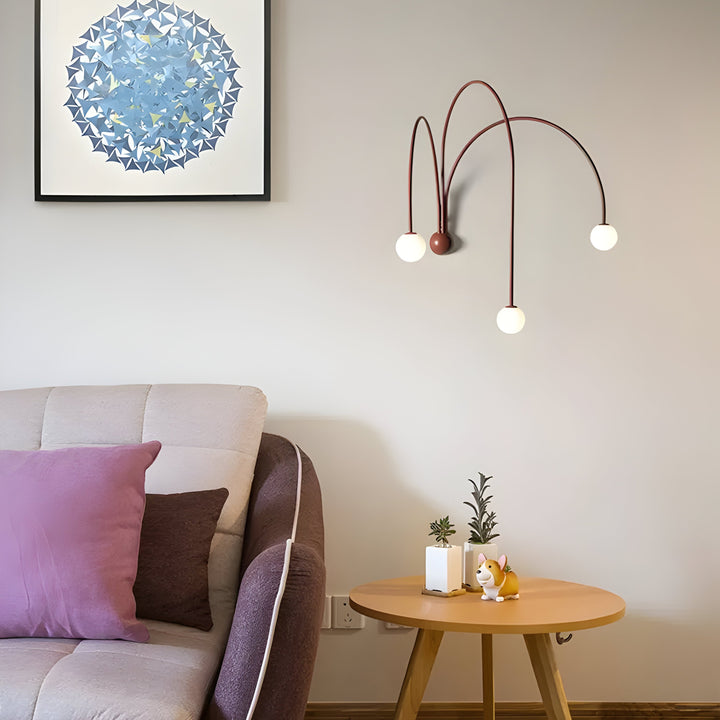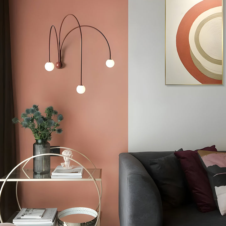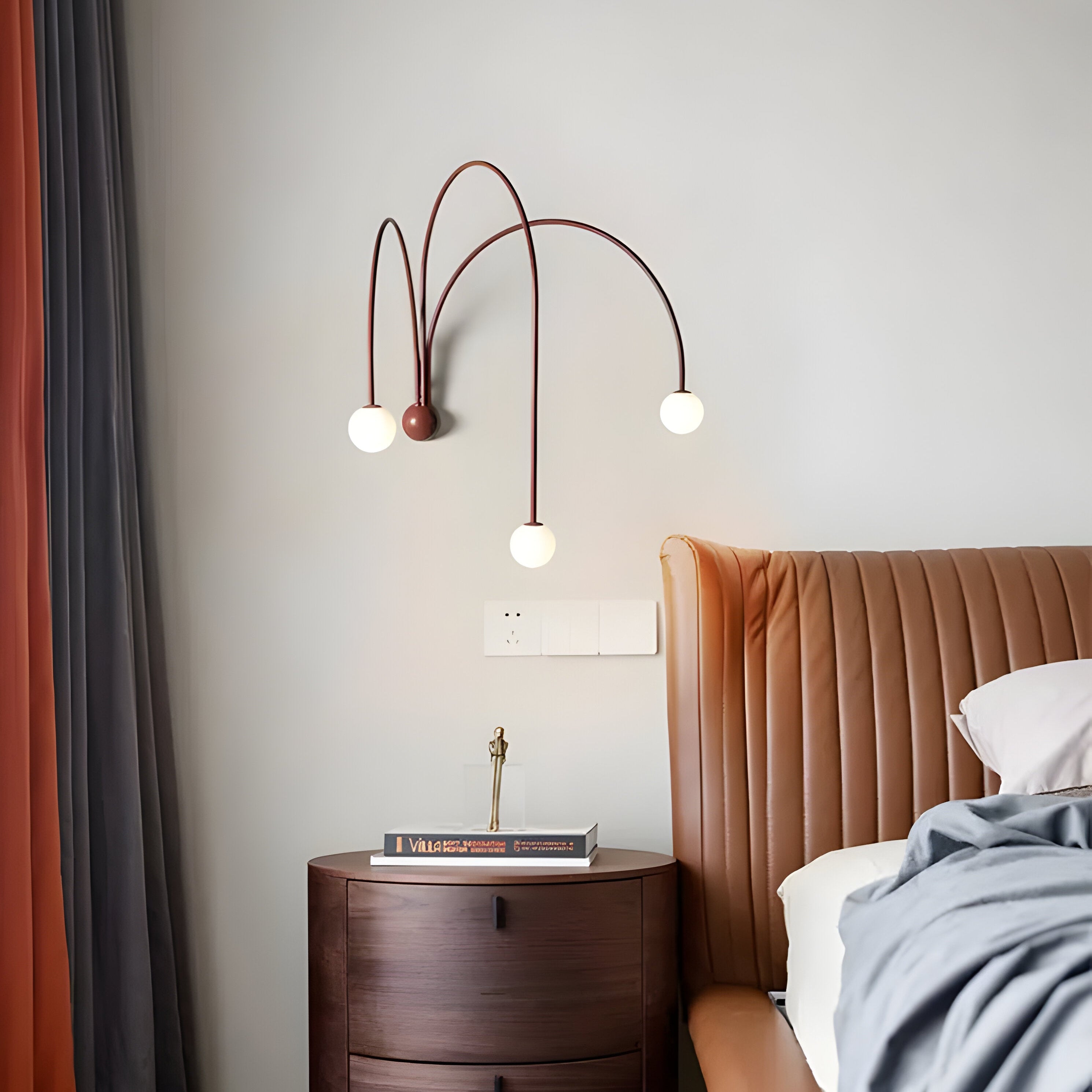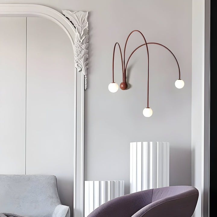 Elevate your space with the modern Bomba Wall Light featuring a striking red metal frame and elegantly curved arms. The sculptural design showcases white globe lights, creating a perfect balance between contemporary art and functional lighting. Ideal for high-end interiors, luxury living rooms, dining areas, or boutique spaces, this unique pendant light adds a bold yet sophisticated statement. Crafted for design enthusiasts, it blends mid-century inspiration with modern elegance. Perfect for those seeking a high-impact focal point in their décor.