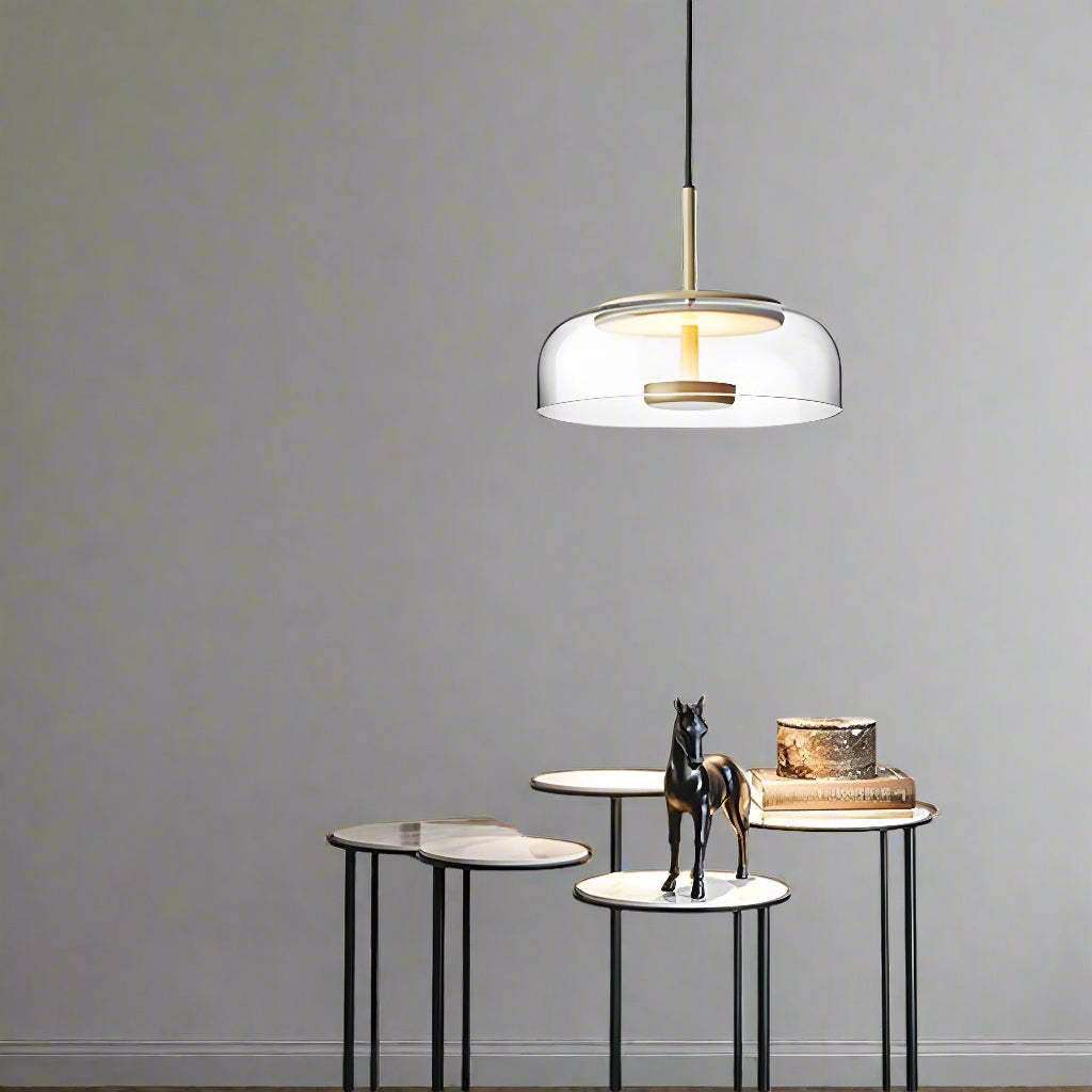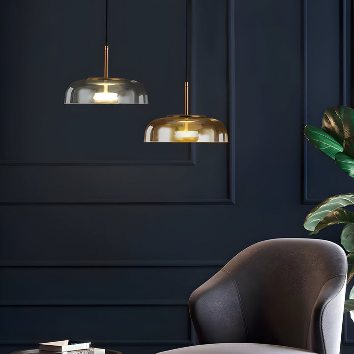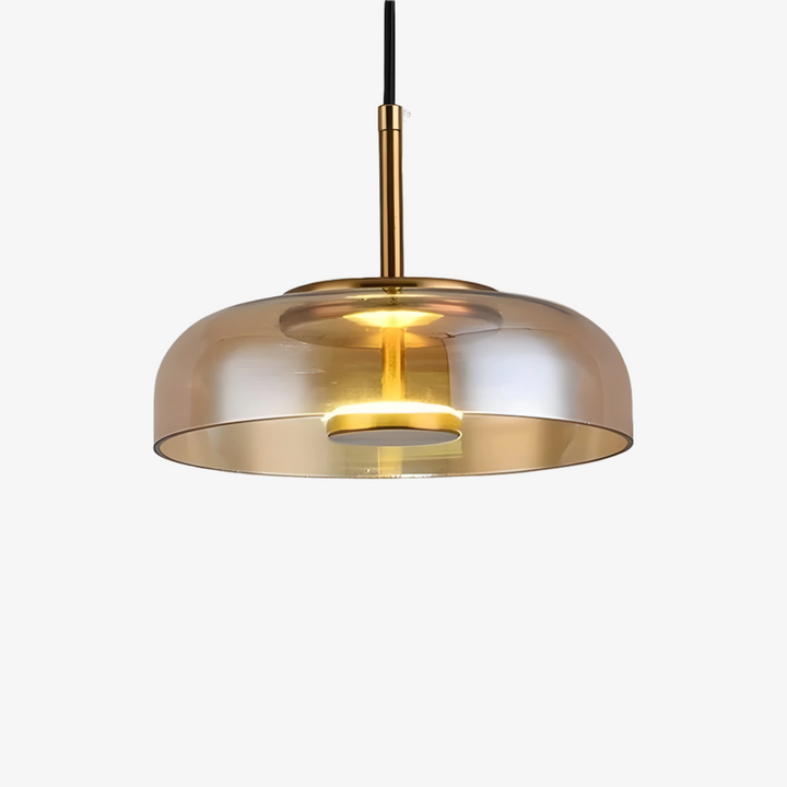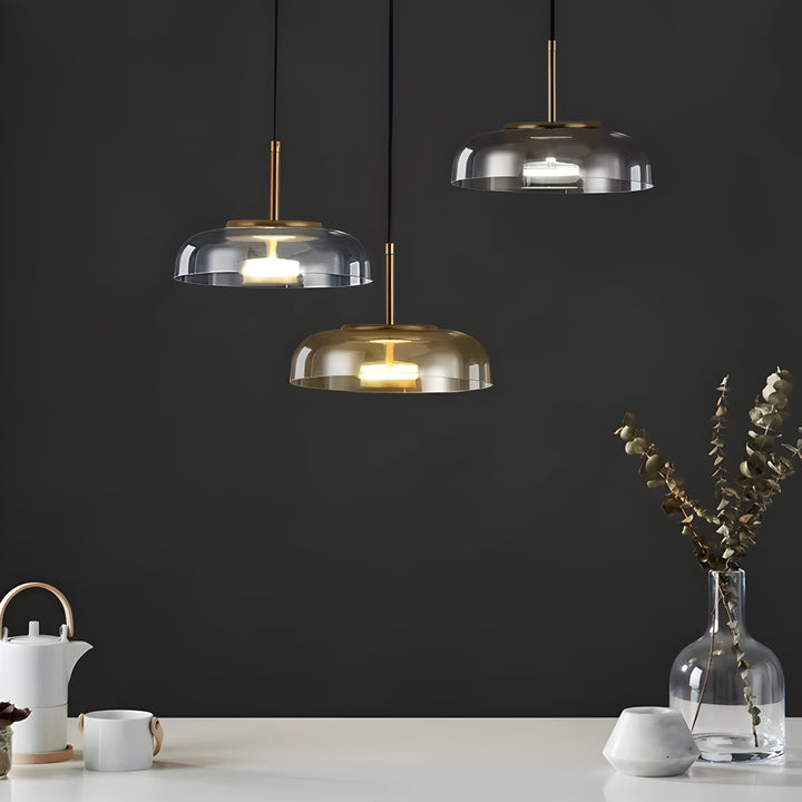 Elevate your interior with the Costa Pendant Light, featuring a sleek layered glass dome design in clear, smoked, and amber finishes. The sophisticated gold and black accents add a touch of luxury, making it an ideal choice for kitchens, dining rooms, living spaces, and upscale commercial interiors. Designed to blend seamlessly with contemporary, minimalist, and industrial décor, this pendant light provides a warm, ambient glow, creating a stylish and inviting atmosphere.