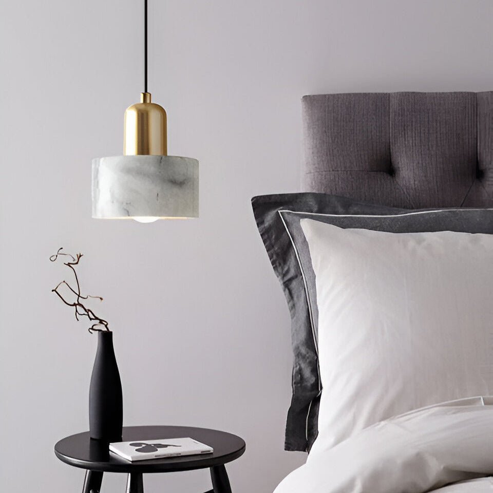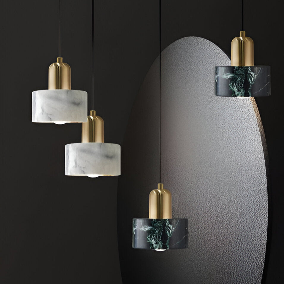 Enhance your space with the luxurious marble and brass Esami Pendant, combining modern elegance with timeless sophistication. Featuring cylindrical marble shades in striking black and white tones, paired with sleek gold-finished metal, these lights add a refined touch to kitchens, dining areas, and upscale interiors. The natural veining of the marble creates a unique aesthetic, while the warm illumination provides a cozy yet stylish ambiance. Perfect for contemporary, minimalist, or classic decor, these pendant lights seamlessly blend functionality with high-end design.