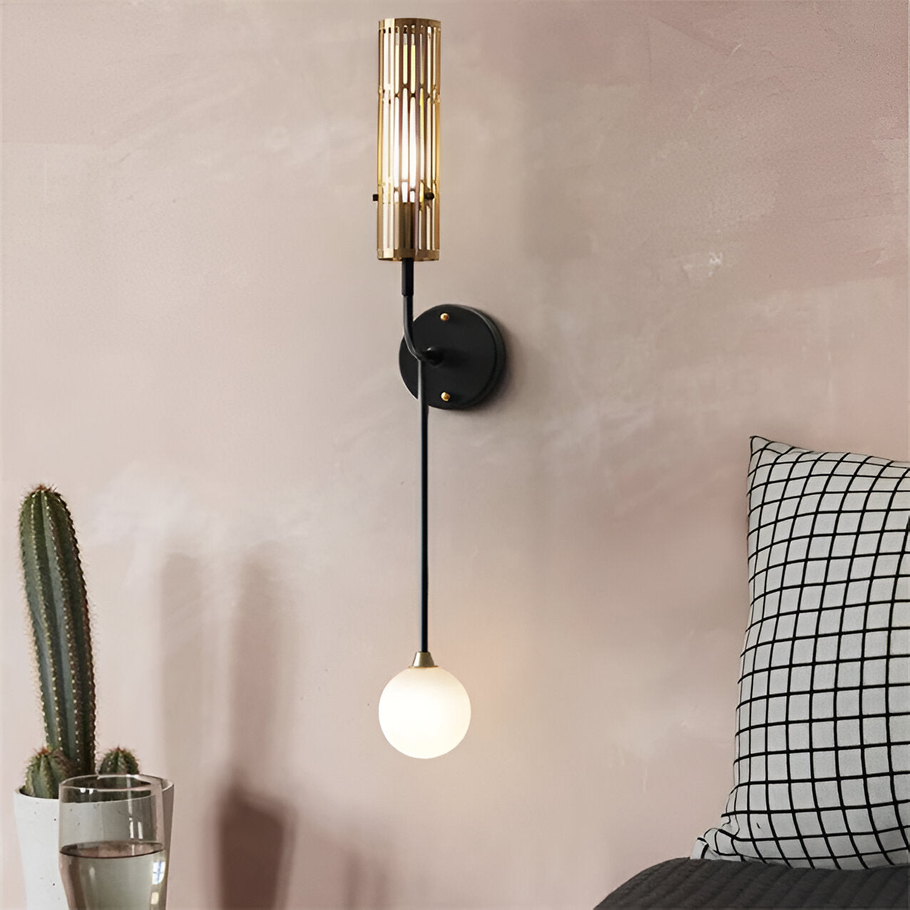 The Feri Wall Light offers a unique blend of industrial chic and contemporary design. This striking fixture features a slender, vertical metal frame with a distinctive, textured finish, reminiscent of vintage factory lighting. The delicate glass globe at the end of the swaying arm provides a soft, ambient glow, creating a captivating focal point. The interplay of textures and materials adds a touch of sophisticated artistry to any space. Ideal for adding a statement piece to hallways, living rooms, or bedrooms, the Imperiumloft Sway Wall Sconce offers both style and function.
