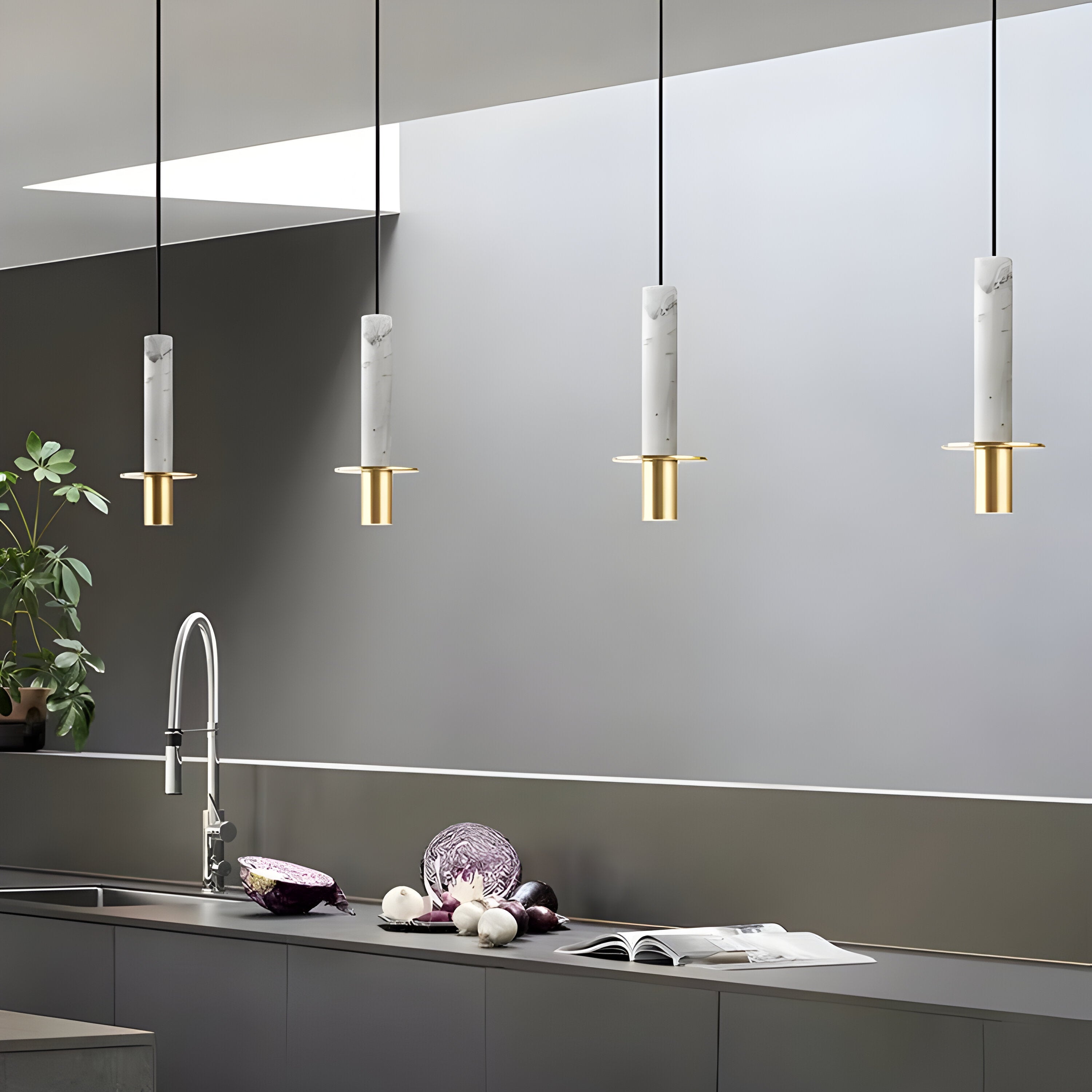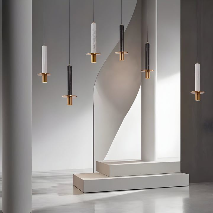 Elevate your home with the Modern Marble & Brass Hati Pendant. This stunning pendant blend elegant marble cylinders (white, black veined, or speckled) with sleek brass rings and canopies. Hati rovides a warm glow, perfect for kitchens, dining rooms, or living areas. Adjustable cords ensure customized installation. Add modern luxury and artistic flair to your décor.