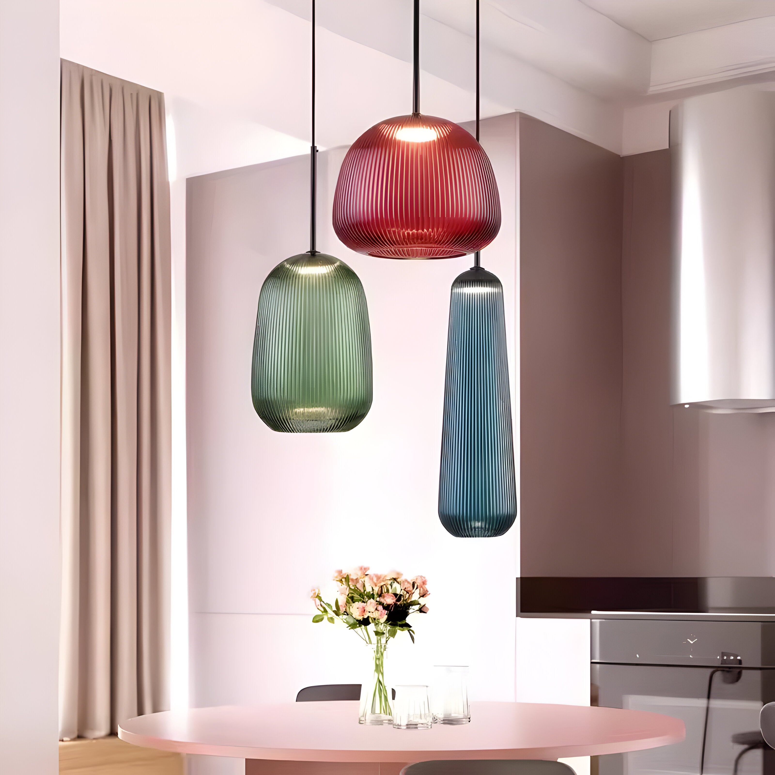 The Looxi Pendant Light captures attention with its unique blend of textured glass and elegant forms. Each hand-blown glass shade features a delicate ribbed pattern, adding visual interest and diffusing the light beautifully. The collection offers a variety of shapes and colors, allowing for customized arrangements and a personalized touch. These pendants create a sophisticated and inviting atmosphere, perfect for making a statement in dining rooms, living areas, or entryways.