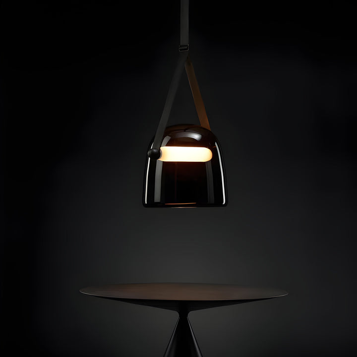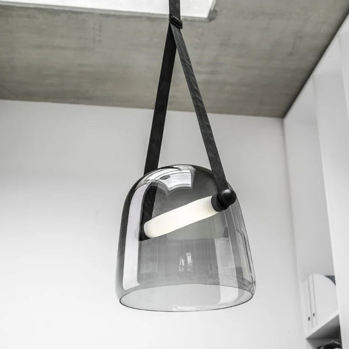 The Mona Pendant, showcases a striking combination of smooth, hand-blown glass and elegantly stitched leather detailing. Featureing a bell-shaped glass shade, available in both smoked and milk glass, suspended by a distinctive leather strap. This design creates a sophisticated and warm aesthetic, perfect for adding a touch of understated luxury to dining rooms, living areas, or bedrooms. The Mona pendants offer both ambient and focused light, making them a versatile choice for modern interiors.