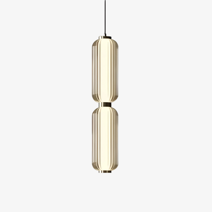 The Olie Pendant features a sophisticated, modern design ideal for adding a touch of understated elegance to any space. This pendant showcases a sleek, cylindrical shade crafted from textured glass with a subtle, ribbed pattern, providing a soft, diffused light. The minimalist design is complemented by sleek metallic accents and a slender suspension cord, creating a clean and airy aesthetic. Perfect for kitchen islands, dining tables, or workspaces, the Elma Linear Pendant Light offers both style and function.